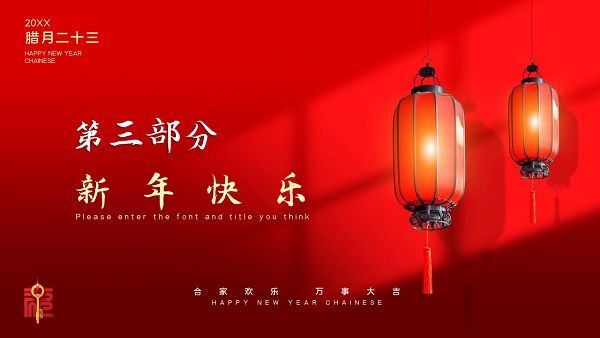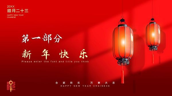 小年夜主题PPT不知道怎么制作的话可以直接下载这套模板套用,模板以中国红为主色调,还加入了红灯笼、福字等元素,看起来喜气洋洋。