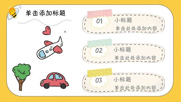 儿童节主题PPT模板适用于一些儿童类活动使用,风格童趣活泼,明亮的色彩可以吸引孩子的注意力,模板为PPT格式文件,大家可以直接下载源文件进行套用。