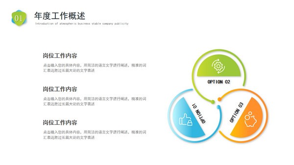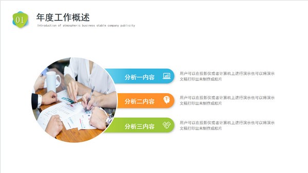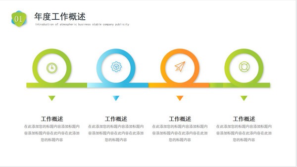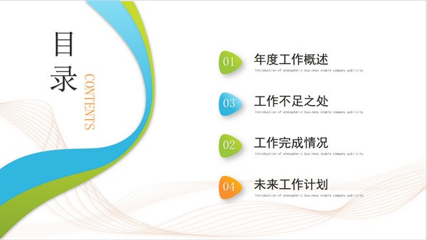 不喜欢把工作年终总结ppt做成花里胡哨的样式的话,就可以试试这款清爽干净的“简约年终总结工作汇报PPT模板”,模板内容主要包含年度工作概述、工作不足之处、工作完成情况以及未来工作计划几个中心点,你可以直接将源文件下载下来后自行编辑修改。
