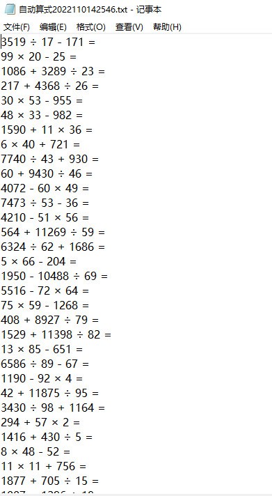 下载帮助:点击自用算式生成器软件立即下载,解压后安装,一直点下一步,直到安装完成,再打开使用。