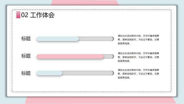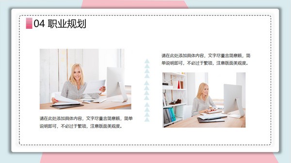 软件采用了PPT演示文档的格式展示,能够让用户的简历看起来更加整洁清晰,页面的风格非常小清新,粉蓝色的色调让人看起来很舒适,免费提供下载,直接根据个人经历修改内容即可。