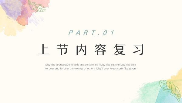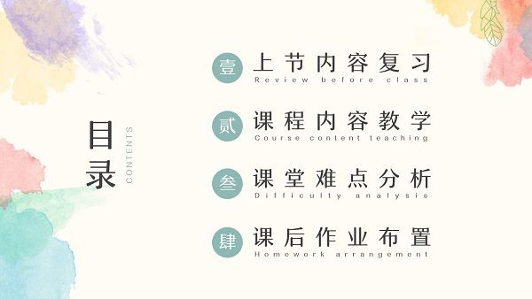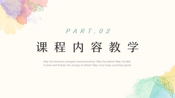 老师可以通过制作并展示美观的课件来更好地对学生们进行授课,一份好的课件内容能够更加吸引学生的注意力,下面小编就为大家分享这款水彩小清新教学通用PPT模板工具,通过这个模板用户能轻松打造出优秀出色的教学课件,模板的设计是小清新水彩风格的,让人看起来感觉很舒适。