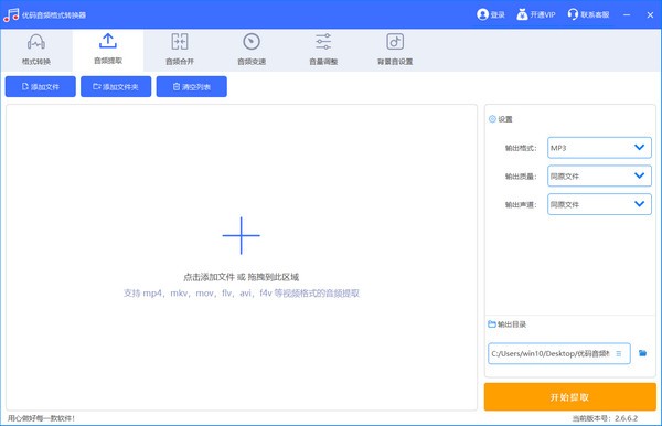 支持MP4、mkv、mov、flv、f4v等视频格式的音频提取