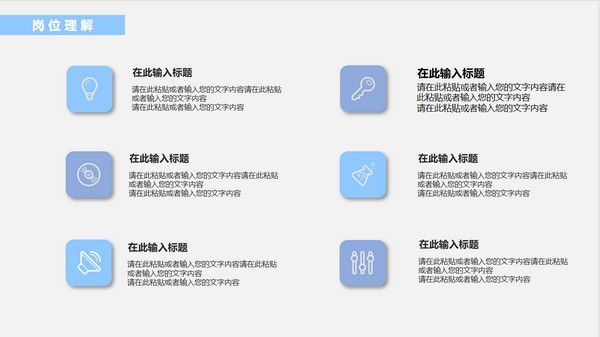 软件很适合用来编写竞聘岗位的演示文档,格式为ppt的效果,文档的页面设计为简约优雅的风格,色调是蓝色,看起来美观舒适,更能为面试官带来好感,提高自己被录用的几率。