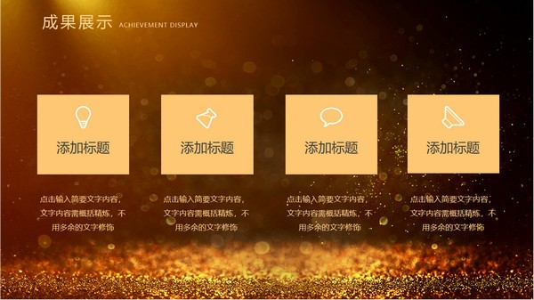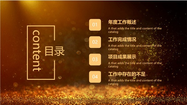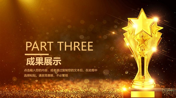 金色大气公司年会盛典PPT模板适用于公司年会盛典或者颁奖大会,星光熠熠的很有氛围感,喜欢的话可以直接下载该模板套用~