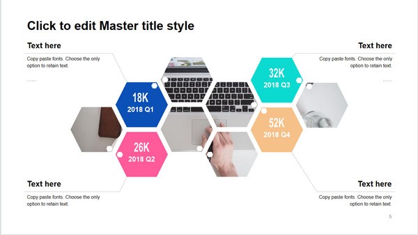 该PPT模板分5个部分,每个部分都包含丰富的逻辑图示素材、图表素材、版式和素材,非常丰满而非常实用。
