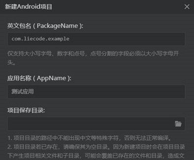 打开 AMixStudio(简称 AMS),点击工具栏的 新建 按钮,弹出 新建Android项目 的对话框。