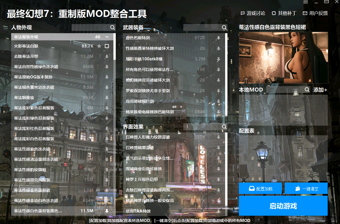 最终幻想7重制版MOD整合版工具下载v1.1.0.2,使用后就能可以让广大玩家一键快速安装、配置、卸载最终幻想7重制版mod,小白用户也能用,非常非常方便快捷。