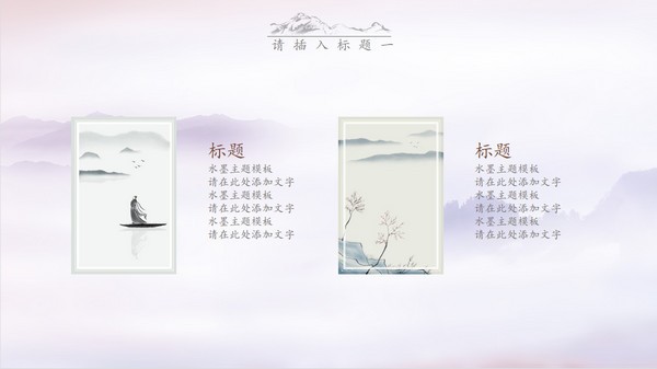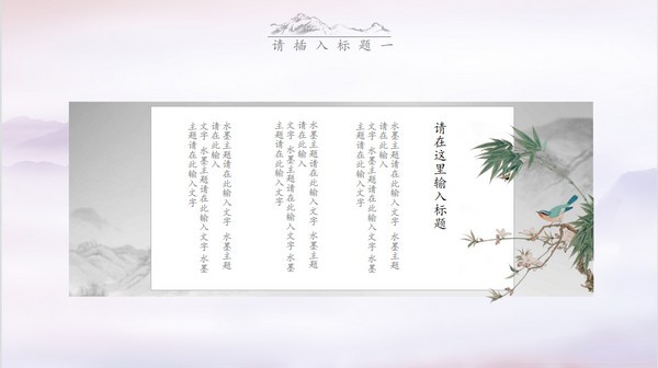 PowerPoint模板内容页,由22张精致水墨幻灯片图表,搭配PPT文字排版。另外使用了水墨荷花、山水国画、仙鹤、竹子等国学元素装饰。
