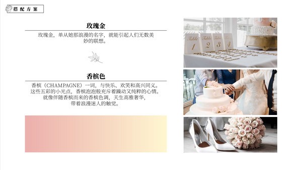 一个好的婚礼策划方案能够让婚礼活动更加有序的进行,这款简约时尚婚礼策划PPT模板就是一个非常不错的婚礼策划制定PPT,里面主要包含了主题设计、视觉设计、流程设计以及婚礼配置,具体样式可以参考下文展示,模板内容都是可以自由修改的,需要的话可自取。