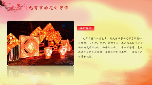 古典喜庆元宵节主题班会PPT模板软件所展示的资源内容均来自于第三方用户上传分享,您所下载的资源内容仅供个人学习交流使用,严禁用于商业用途,软件的著作权归原作者所有,如果有侵犯您的权利,请来信告知,我们将及时撤销。