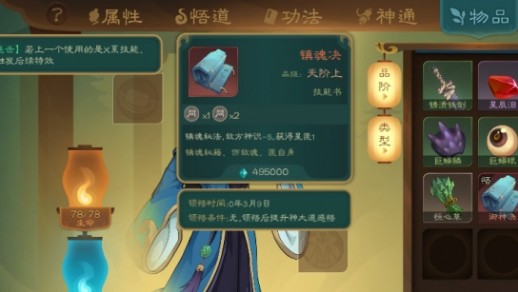 觅长生镇魂决神通MOD是小编专门为喜欢觅长生的小伙伴们准备的,能够在游戏中添加一个功能非常强大的神通,补丁由“小六子”制作并分享,玩家安装使用之后就能获得叫做镇魂决的神通,品级为天阶功法,属性功能都很不错,玩家能够通过领悟镇魂诀获得更高的大道感悟属性。
