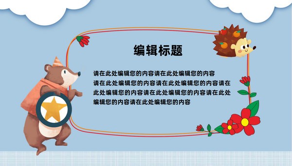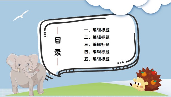 简约可爱动物卡通通用PPT模板具有很强的通用性,能够应用在许多不同的场景中,可以帮助用户轻松制作出美观的PPT演示文档,通过这款非常实用的模板工具用户能更好地展示自己的文档内容,风格可爱,带有卡通动物元素,适合用来制作儿童相关的教学课件等等,吸引小朋友的注意力。