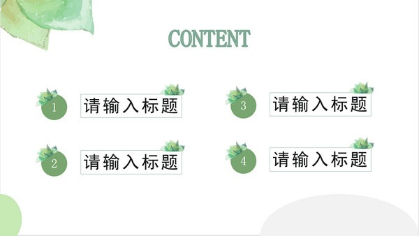 小清新水彩盆景植物背景PPT模板是非常多的人都在使用人用的一款设计风格清新自然的模板工具,能够帮助用户制作出美观的ppt演示文档,这款模板中包含了许多植物相关的素材,整体色调为绿色,让人觉得很舒适,能够用来制作不同类型的幻灯片,文字排版整齐美观,一共包含了25张,支持免费下载编辑。