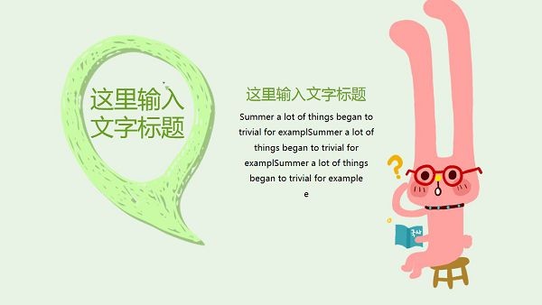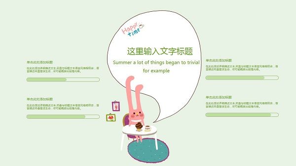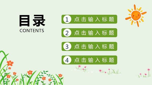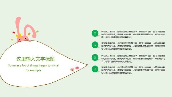 PowerPoint模板内容页,由多张卡通小动物、卡通植物、小朋友插图等,搭配PPT文字排版。