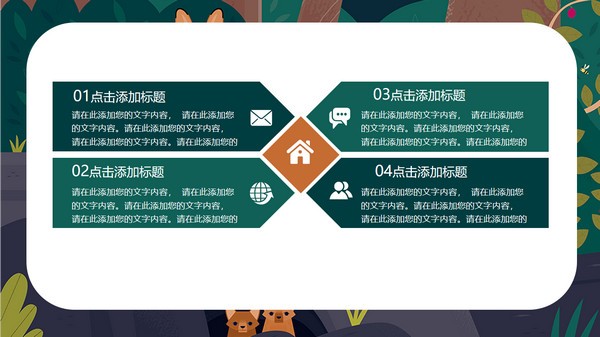 插画风儿童教学课件PPT模板很适合用来制作课件讲解,是PPT演示文档的格式,模板采用了插画风格的设计,上面带有许多可爱的卡通动物图案元素,看起来美观又生动,能够制作出吸引孩子们注意的幻灯片,非常方便进行儿童教学,模板内容清晰丰富,完全免费,支持自定义修改内容。