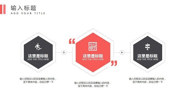 PowerPoint模板内容页,由24张红色黑色配色的幻灯片图表,搭配PPT文字排版。另外使用了写字楼建筑插图、职场办公插图、握手图片等装饰。