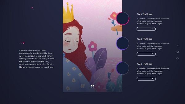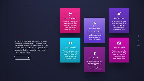 PowerPoint模板内容页,以深蓝色为背景色,彩色渐变图表,搭配英文文字排版。
