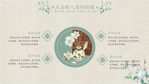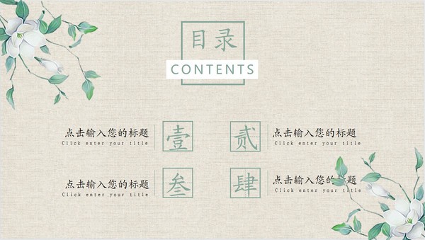 绿色淡雅水彩花卉背景春天PPT模板以春天为主题,画风一片盎然,还使用了水彩绘制的绿叶白花植物图案,整体清新淡雅,看起来十分养眼。