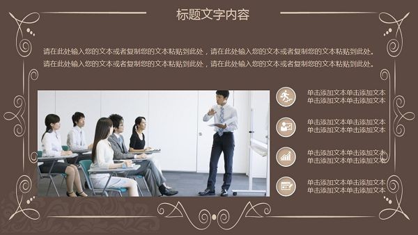 棕色古典花纹通用PPT模板是非常多的人都在使用人用的一款通用性很强的PPT演示文档制作模板,能够帮助用户轻松打造出优秀美观的幻灯片效果,这款模板的整体色调为棕色,看起来十分具有古典的韵味,设计风格优雅精致,可以用来制作不同类型的文档,包括工作汇报、新年计划等等,图文内容都可以编辑。