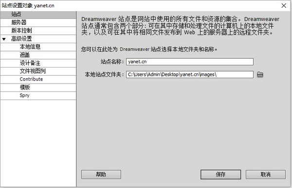 4、你在dreamweaver主界面可以看到出现了本地的站点。这证明你的站点建立完成。你以后的网站文件都会存储在你的这个文件夹下。如图: