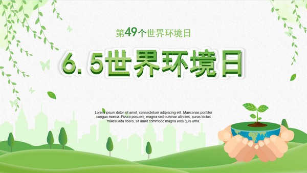 每年的六月五日是世界环境日,这一天一般都会呼吁大家保护环境,通过PPT文档的演示可以更好地为群众介绍这个节日,今天小编为大家带来的这款绿色清新世界环境日介绍PPT模板是专门用来制作世界环境日介绍的模板工具,可以帮助用户打造出美丽的幻灯片,让人们认识到环境的非常重要的。