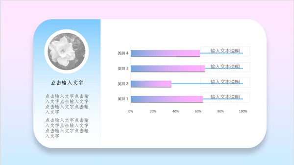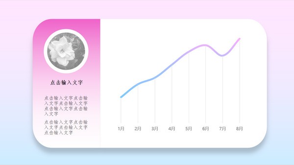 模板中包含了粉蓝色渐变的背景和卡片设计的文本框,搭配起来简约又不失美观,里面的图片和文字内容都能随意编辑,免费开源,用户可以直接下载使用。