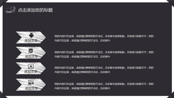 模板的整体色调为黑白配色,看起来简约大气,用来制作课堂教学PPT再合适不过了,图文排版也非常整洁,能够帮助用户打造出美观的课件,非常方便老师将知识内容展示给学生观看。