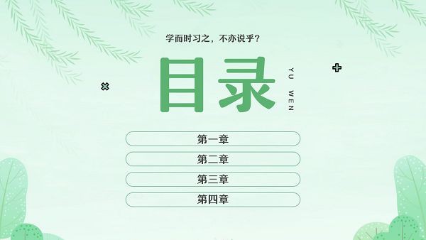 绿色小清新语文教育教学通用PPT模板一共17页,以淡绿色主背景,整体风格清新
