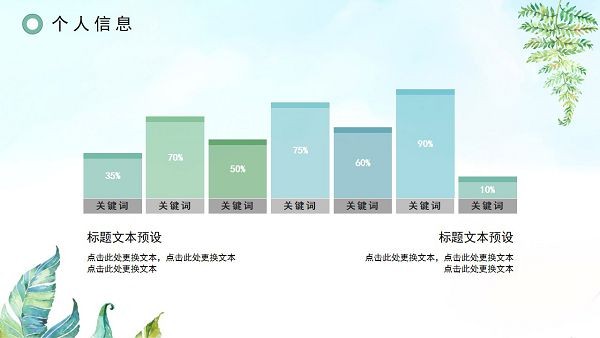 PowerPoint模板内容页,由22张绿色动态PPT图表,搭配个人简历文案制作。