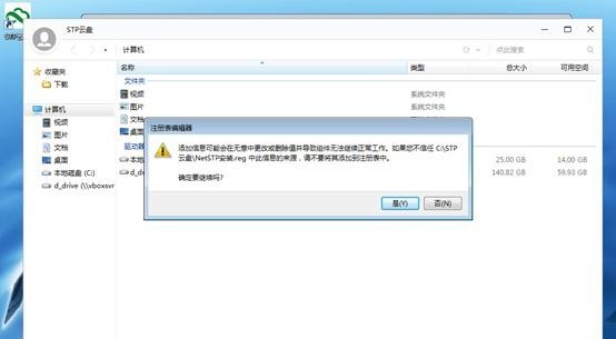 第一次运行,会自动在桌面和我的电脑中创建“STP云盘”的快捷方式,并在注册表中导入一些关键的信息,这时候如果电脑有风险提示的话,请一律点允许或同意。