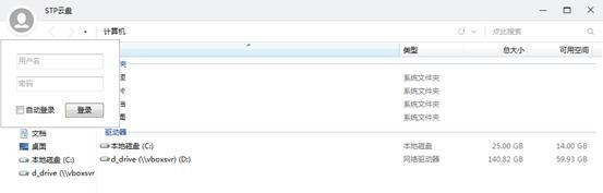 然后会出现一个类似“我的电脑”的界面,点击左上角的用户图标,输入用户名、密码,完成“登录”。也可以勾选“自动登录”,下次就不需要输入用户名和密码了,轻松实现自动登录。