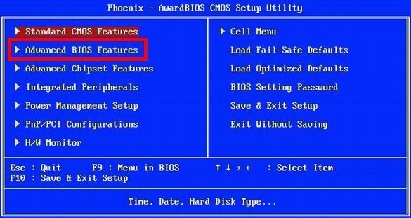1、经由、标的目的键选择【Advanced BIOS Features】选项,按下回车