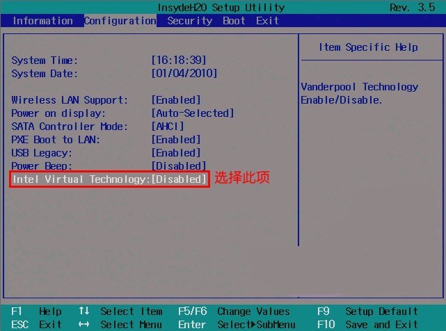 1、经由、标的目的键选择 Configuration 选项,然后经由、标的目的键选择 Intel Virtual Technology 并按下回车