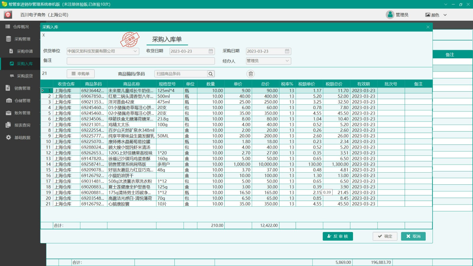 1、采购入库管理:系统提供采购进货、采购退货、采购付款的管理流程;采购进货单开单后:库存自动增加,实时可查询存货;供应商应付账款在进货和付款时自动增减,实时可查。