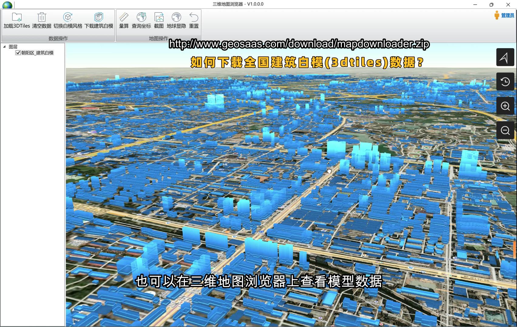 除此之外,软件还支持下载全国行政区划、建筑轮廓(基底)、POI兴趣点、DEM高程和建筑白模(3dtiles)数据。