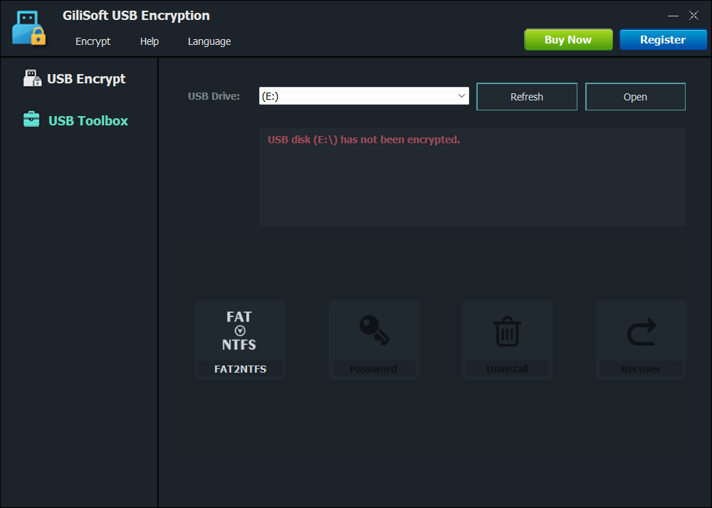 USB加密可以加密USB u盘,闪存盘,移动硬盘,内部硬盘。我们建议您格式化您的u盘为NTFS文件系统类型,然后开始加密与Gilisoft USB加密。