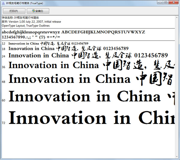 叶根友毛笔行书简体常规字体电脑版软件