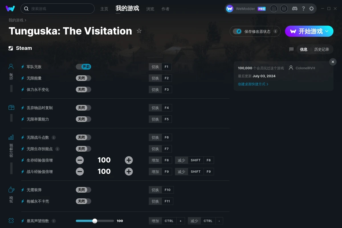 以上就是通古斯:探视v2024.07.03十二项修改器的全部内容了,快快收藏非凡软件站下载更多软件和游戏吧!