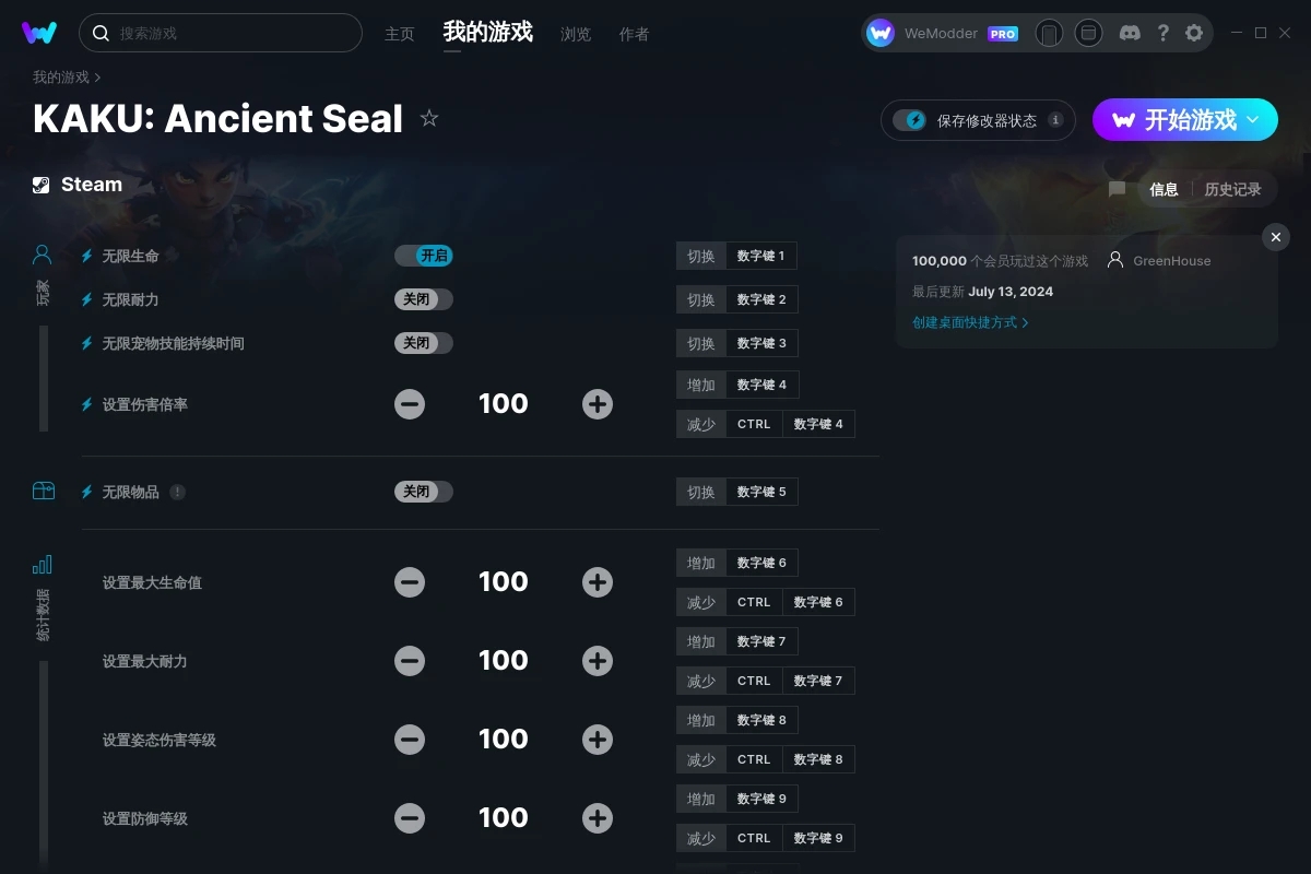 - 软件名称卡库远古封印十四项修改器 v2024.07.13下载