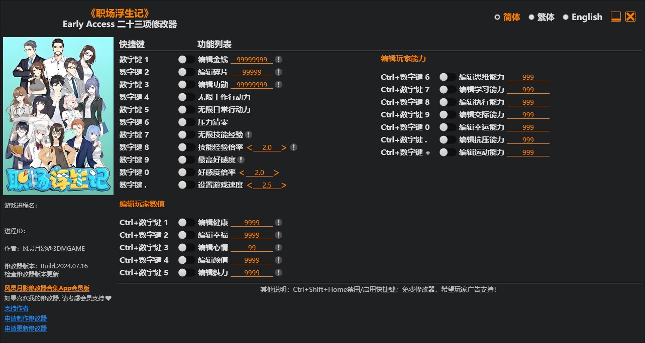 - 软件名称职场浮生记二十三项修改器风灵月影版 v2024.07.16下载