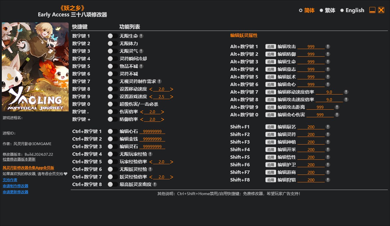 妖之乡三十八项修改器风灵月影版 v2024.07.23下载