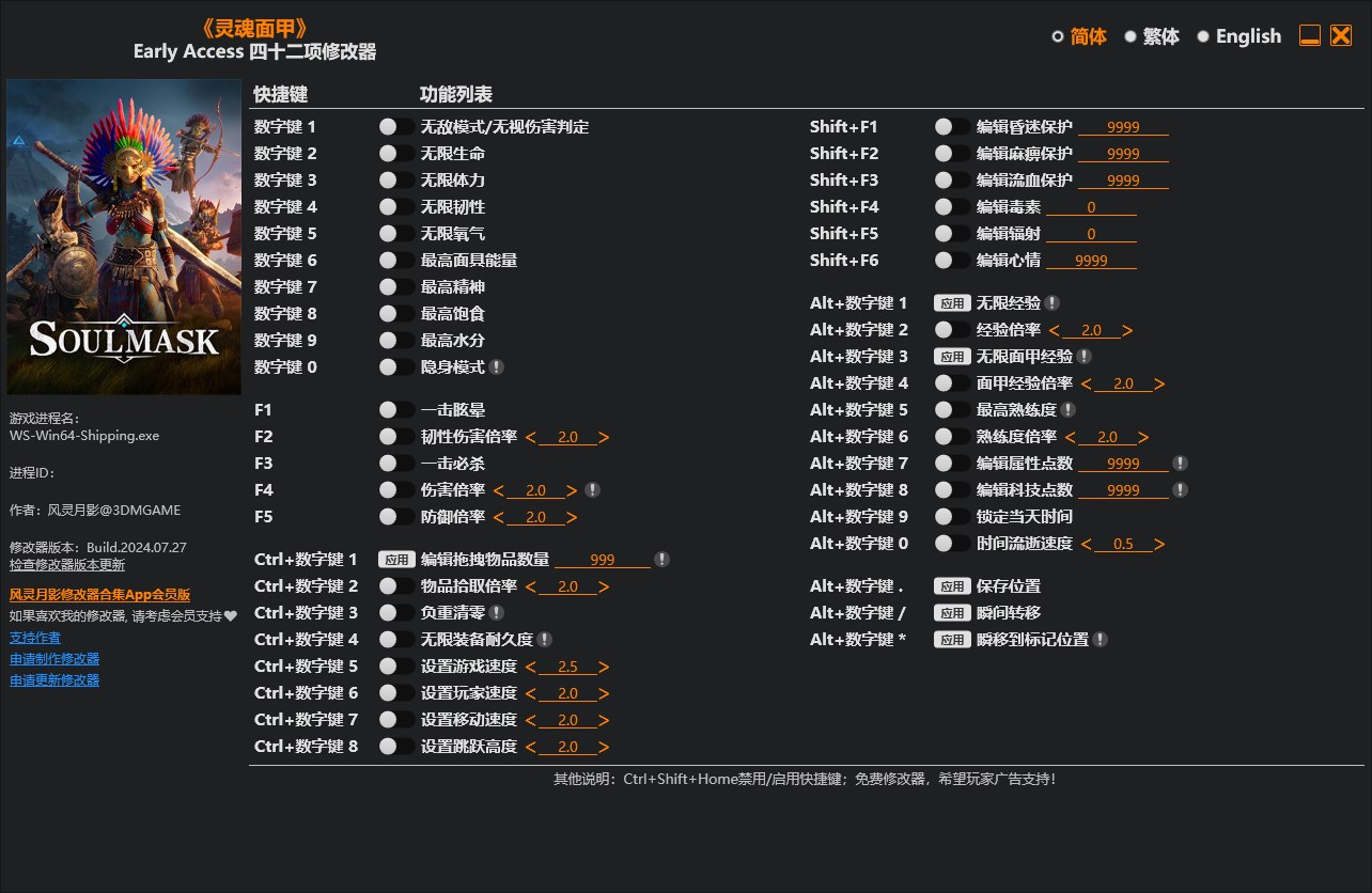 - 下载文件名Soulmask.Early.Access.Plus.42.Trainer.Updated.2024.07.27-FLiNG.zip
