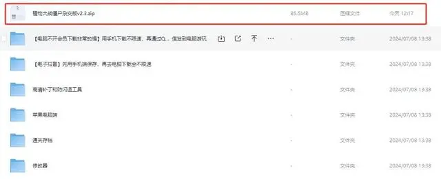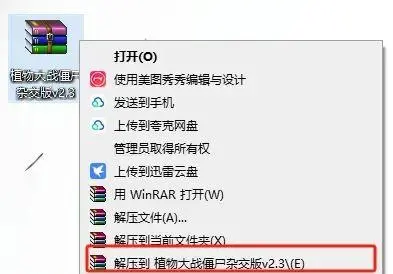 2、右键点击下载的压缩包,解压到“植物大战僵尸杂交版v2.3”文件夹。