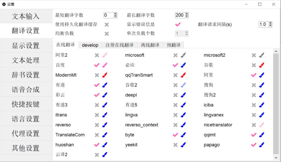 注册在线翻译 支持使用用户注册的百度、腾讯、有道、小牛、彩云、火山、deepl、yandex、google、飞书、ChatGPT、Azure 翻译