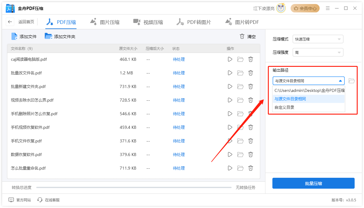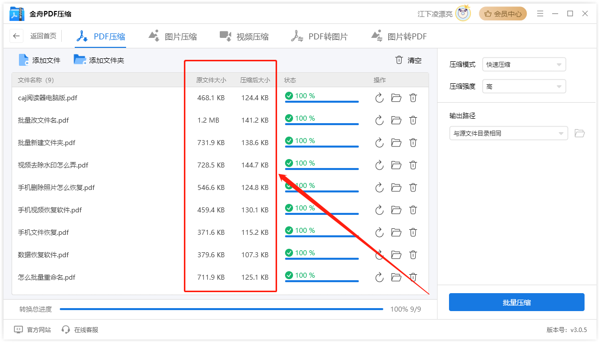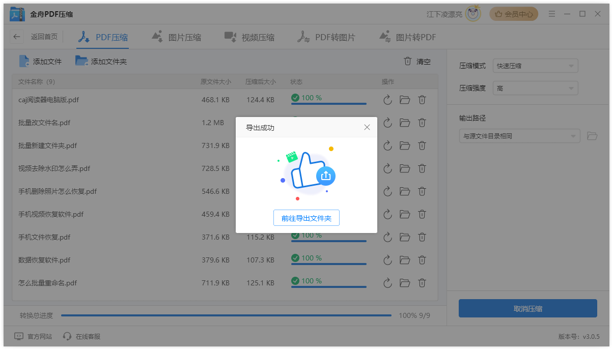 批量处理:支持一次性导入多个PDF文件进行批量压缩,大大提高工作效率。