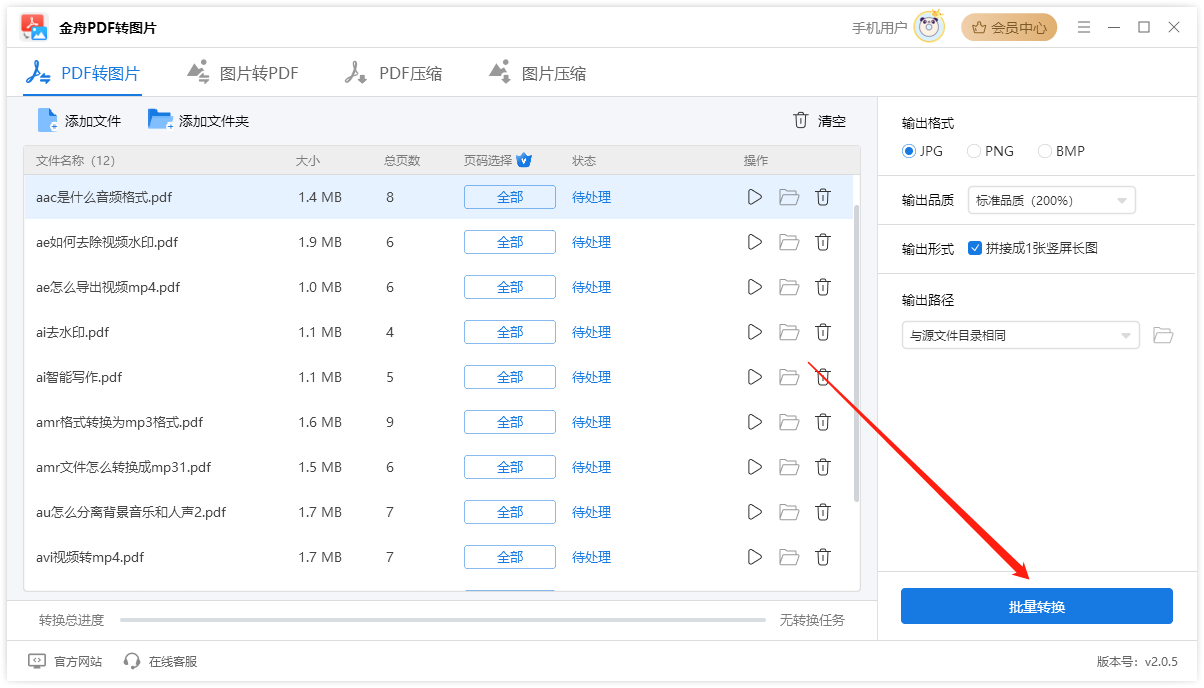8、完成以上操作后,点击“批量转换”就可以了;