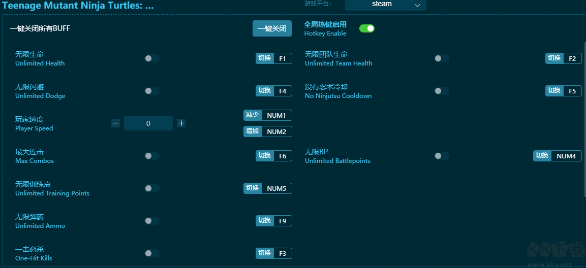 忍者神龟:变种释放五项修改器无疑是非常多的人都在使用人用的一款非常非常实用的游戏辅助工具。它提供了丰富的功能,让玩家在游戏中可以轻松获得无限资源,从而享受更加畅快的游戏体验。对于新手玩家来说,这款修改器更是不可或缺的好帮手。