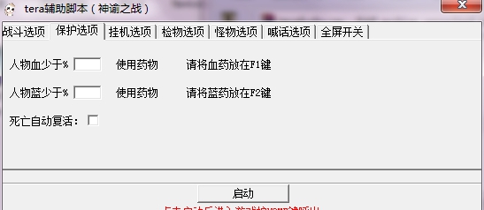 1. 首次使用需要先启动《tera》多功能辅助脚本,然后再启动《tera》客户端;进入游戏后软件内点击启动读取角色信息等。