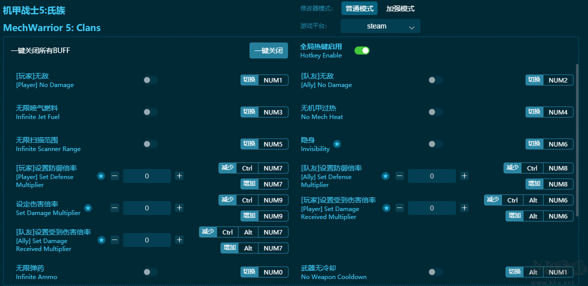 机甲战士5:氏族十项修改器无疑是非常多的人都在使用人用的一款非常非常实用的游戏辅助工具。它不仅功能强大、简单易用,而且安全可靠、实时更新。通过它,玩家可以轻松获得无限资源和超强属性,享受更加流畅、爽快的游戏体验。如果你是一位机甲战士5:氏族的忠实玩家,那么这款修改器绝对值得一试!